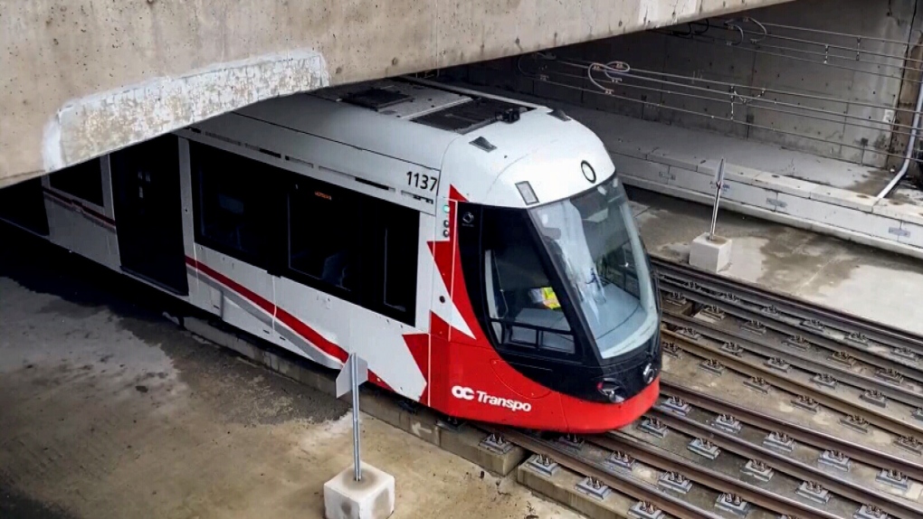 A practice passes below an overpass alongside the Confedration Line of Ottawa’s LRT. (CTV Information Ottawa)