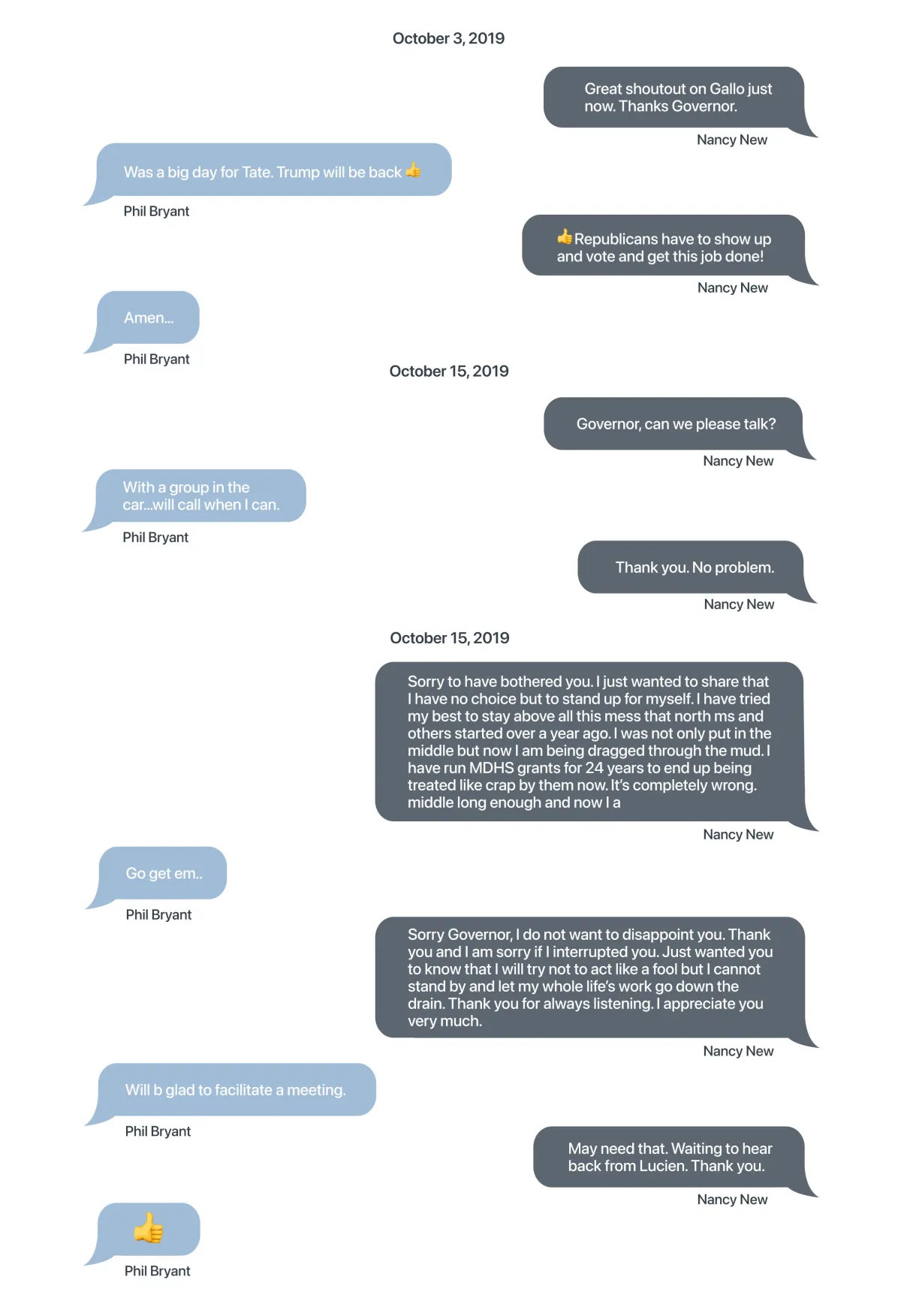 “Waiting to listen to back from Lucien,” New said, probable referring to Mississippi GOP Chair and expert Lucien Smith.